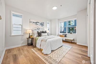 Live in the heart of the U-District at Sun Plaza—just blocks from UW. This fully remodeled 2BR/2BA condo with den is refreshed top to bottom with new flooring, paint, quartz countertops, upgraded lighting, fixtures, and stylish baths. The living area features a cozy fireplace and extends to the private patio—your retreat to enjoy coffee and the hum of the city. French doors open to a flexible den, while the kitchen shines with quartz counters, gas stove, and freshly painted cabinetry. Retreat to a primary suite with dual closets, plus a 2nd bedroom with its own walk-in closet. With secure parking, in-unit laundry, and effortless access to light rail, downtown Seattle, Trader Joe’s, restaurants, and theaters, this is city living at its best.
