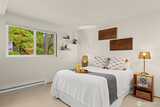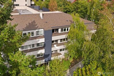 Discover downtown Mercer Island living at its best. This sunny end unit seamlessly blends mid-century modern charm with contemporary updates. The bright, airy kitchen boasts soft-close cabinetry, quartz countertops, and farmhouse sink—perfect for prepping brunch before strolling to the Farmer's Market. Sip morning coffee on your private covered deck surrounded by lush leafy views, then explore everything at your doorstep: browse Island Books, grab pastries at Macrina Bakery, or unwind at Mercerdale Park. Radiant-heated bathroom floors and a laundry room with custom storage elevate the everyday, while reserved covered parking, bonus storage, and elevator access add practical ease. Minutes from I-90, top-rated schools, and future light rail.