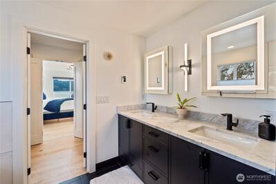Welcome to this fabulous 2 bedroom 2 bathroom condo within the Lake Villas Community. Minutes to the dock where a new boat lift at 8500lbs was installed at the end of 2023. This 1 level condo is fully renovated at the end of 2023 with all approval from the HOA and the city of Redmond. With an open floor concept with the living space, kitchen and eatin area with a cozy new gas fireplace. A large spa like primary bedroom with lots of natural light and veiws of Lake Sammamish. The spare bedroom has plenty of space for your needs whether it be an office or a bedroom. All closets are outfitted with custom closet systems. An amazing 6 acre property with a club house including an outdoor pool, spa and gym.