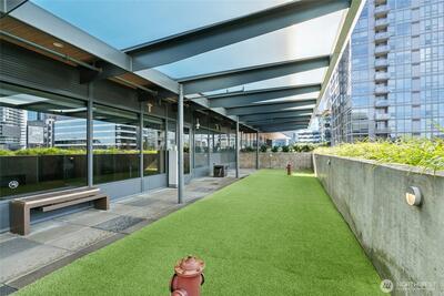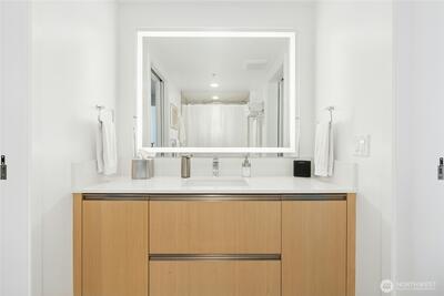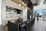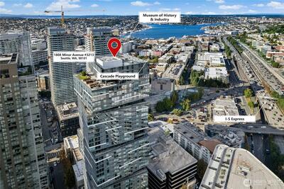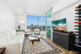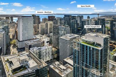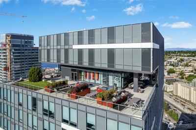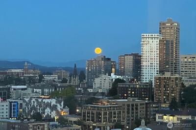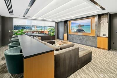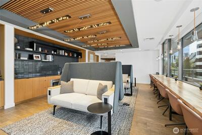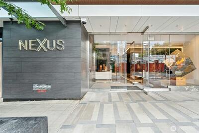 Luxury living at NEXUS: 1BR + Den with rare Mt. Rainier views! This bright unit features floor to ceiling windows, quartz countertops, hardwood floors, A/C & smart home system. The sleek kitchen includes a stainless-steel oven, Grohe fixtures, and wood-paneled built-in appliances. Upgrades add convenience with motorized solar shades in living room, blackout shades in bedroom, pull-out kitchen drawers & under-sink bins. The spacious bedroom offers an ensuite bath and walk-in closet, while the den provides flexible space for work or guests. Enjoy amenities including 24/7 concierge, dining rooms, co-working lounges, fitness center, theatre, Sky Club rooftop, outdoor spaces & a dog run with wash station. Large parking and storage are included!!