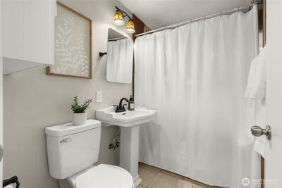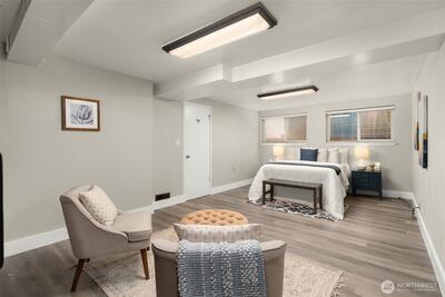 Fresh energy in this Leschi mid-century home built 1950 with great outdoor spaces: fenced front yard with raised gardenbeds, and backyard trex deck + hot tub is perfect for hosting! Original hardwood floors, open/efficient kitchen, and aperfect floorplan with two bedrooms on the main plus a full bath. Head Downstairs to your private sanctuary: a primarysuite with a large new bathroom; and an extra den / office space for WFH. Clutch location, just mins to all your fav spots:drop your SUP in at Lk WA in Leschi, go for matcha at Yoka Tea, pizza a Sacro Bosco, and more!