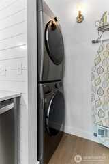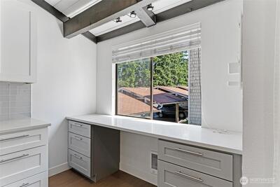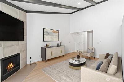 This modern 2-bed, 2-bath condo stands out with its vaulted ceilings and thoughtfully finished interiors—features you don’t often find in condo living. Natural light pours into the open layout, accented by recessed lighting, quartz countertops, stainless steel appliances, and a wood-burning fireplace that anchors the living area with warmth and charm. You'll also find a built-in workspace, in-unit laundry, and massive attic storage, adding functionality to the clean design. Nestled near Fred Meyer, Safeway, and quick freeway access (I-5, 405, and 167), this location is as convenient as it is comfortable. Come see what sets this home apart. Healthy HOA Reserves, No Assessments, Siding and windows will be updated sometime in future.