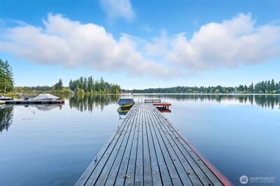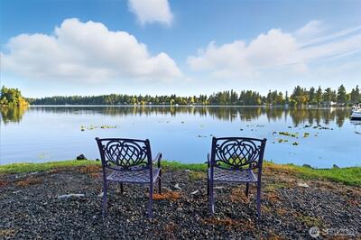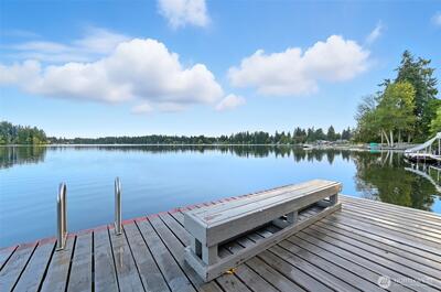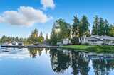 Live on the lake! Private dock, boat slip, clubhouse, tennis court, and community pool! Beautiful, park-like setting in coveted gated community, Coffee Creek. Newly updated 3 bed, 2.25 bath, w refreshed kitchen, laminate flooring, and new carpet, this quiet end-unit condo sits on top of Lake Spanaway. Private, back veranda—exclusive to this unit—backs to a peaceful greenbelt. Inside features custom honeycomb blinds, added attic insulation, and a spacious primary suite with bath and walk-in closet. Built-in workshop and shelving in the garage plus extra storage for added convenience. Community features additional boat trailer storage. Life on the lake is better! Come and see!