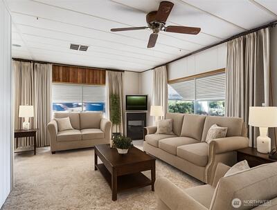 Discover relaxed, easy living in this inviting 3-bedroom home located in a friendly 55+ community! Inside, you’ll find a spacious living room, formal dining & adorable kitchen w/all appliances incl. Primary Ste offers a walk-in closet, dual vanity & walk-in shower while 2 add'l bedrms & guest bathrm w/shower-tub combo provide comfort and flexibility for guests. A separate den/office adds even more versatility! Step outside to enjoy low-maintenance living with a semi-enclosed cov patio, walk-up ramp, and easy-care yard. Covered parking for 3 vehicles & shed. Steps away from Clubhouse w/pickleball court, billiards, jacuzzi, sauna, activities & more; plus it's close to amenities & medical. Sold AS-IS; Space rent $1300 incl use of Clubhouse.
