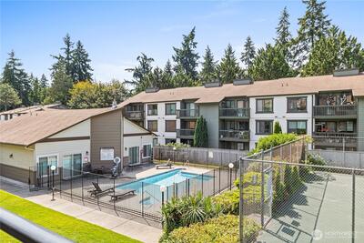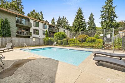 Welcome to your dream home in the heart of Kirkland! This rare pool-facing unit offers serene, resort-style views from your private space. Wake up to the peaceful ambiance of the pool just outside your window and enjoy sunsets from your balcony overlooking the water. Inside, you'll find a bright, spacious layout with direct access to amenities including a workout room, and landscaped common areas—ideal for relaxing or entertaining. Just minutes from the Totem Lake Village, enjoy premier dining, shopping, entertainment, and medical services nearby. Commuting is easy with quick access to I-405, making it a short drive to downtown Kirkland, Bellevue, or Seattle. Complex features new siding, roof, decks, and windows! New paint & no rental cap!