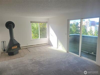 Updated Shoreline Condo Southwest-facing corner unit in central Shoreline. Open & bright, minutes to I-5, the new Sound Transit station, shopping & restaurants. Sunken living room w/wood-burning fireplace & slider to private balcony w/ views. Updated w/stainless steel appliances, newer countertops, washer/dryer & modern fixtures. Primary bedroom w/ ensuite plus 2nd bedroom & full bath for guests, office or roommate. Brand new paint and carpeting throughout. Includes carport, storage unit & community amenities: clubhouse, sauna & tranquil courtyard w/ fountain. Seller will pay for one year of HOA dues with acceptable offer.