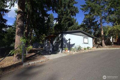 Completely updated manu home in an all-ages mobile home park. This beautiful home offers a lovely view surrounded by trees. A serene and private atmosphere tucked away in the park. It has new windows and natural lighting throughout the house, fresh paint, 2 stunning bathrooms, a skylight in the kitchen, lots of cabinets and a walk-in closet. The kitchen is huge, new cork counter tops, updated flooring, a spacious laundry room. It also has a big shed and carport coverings on all sides of the home. Terrific! Lots of potential with all the space outside, ideal for gatherings, gardening or set up a playground. Enjoy the trails, shopping center, restaurants and schools nearby.