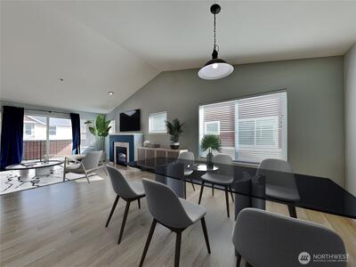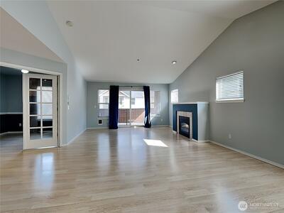 Adorable, 3 bd, 1.75 bath, top floor, unit in desirable, Palisade Park! Entrance opens up to dining, living, kitchen, Great room effect! Lots of windows and vaulted ceilings makes it light & bright! Living room takes you out to the quiet, relaxing, back deck. Gracious kitchen w/ plenty of cabinets& counters, open & inviting for a great entertaining. Large primary bdrm with walk-in closet & bth. Enjoy nearby trails and parks, or walk to the city center for eateries, shops, etc..! Top floor, end unit, garage below, no one above or below! Don't miss this amazing opportunity to own your home in this quaint yet thriving community. Easy access to JBLM, I-5 Steilacoom, waterfront and more! Assumable 3% mortgage available to qualified VA buyers!