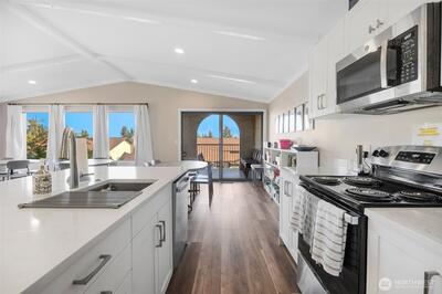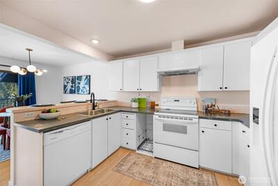 Top-floor condo with sweeping territorial views! Spacious and inviting, this home shines with fresh paint, new carpet, and updated flooring throughout. Abundant natural light pours in through large windows, accentuating the open layout—perfect for relaxing or entertaining. Residents enjoy access to a community cabana with full amenities, including gathering and entertainment space. Ideally located near I-5, Highway 99, and the new light rail, with easy access to parks, shopping, and popular Shoreline restaurants. A rare opportunity to own a move-in ready top-floor condo that blends comfort, style, and an unbeatable location.