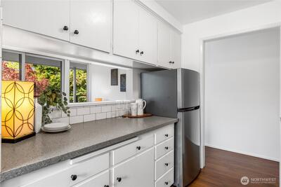 Live in Seattle's best neighborhood! Restaurants, shops, parks and the lake just minutes walk from your doorstep. This top floor condo gives you privacy and abundant natural light, a peaceful outlook to the gardens and treetops. The floorplan is efficiently laid out with flowing entry, kitchen, dining area and living room all oriented to a generous covered deck. Inside renovations include, new flooring, fixtures, appliances and paint and systems. A recent extensive building remodel has made the building envelope like new. Enjoy the central location, easy transit options and small town atmosphere.