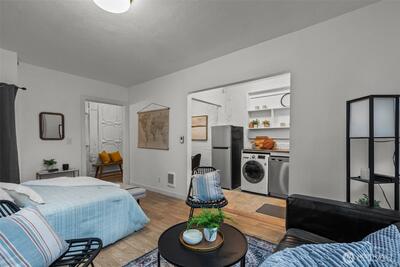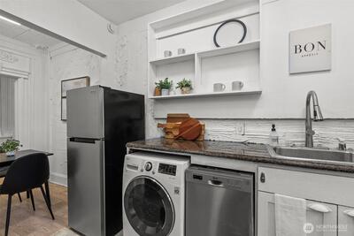Looking for the perfect investment (short term welcome here!) piedaterre or full time residence in the heart of it all? Welcome to 5th Avenue Court, one of Seattle's landmark historic buildings with modern updates and parking! Just minutes to the best of Downtown living, shopping, dining, transit, and all Seattle has to offer. Renovated and retrofitted condo community preserving the historic charm of 1922. Artistic updates to your new condo including Venetian plaster walls (over drywall for easy of anchoring art), modern kitchen with newer SS appliances, in unit washer and dryer + a cozy yet functional floorplan perfect for your in city oasis. The search for the perfect place is real. Come and see what makes this condo so special today!