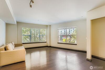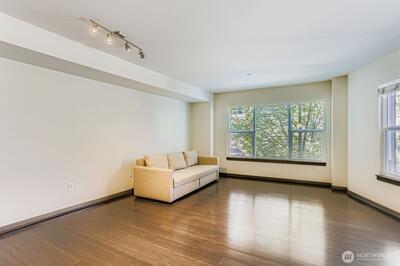 Experience luxury and convenience in this move-in ready condo located in the heart of Green Lake! Unit 207 features a functional, spacious kitchen with stainless steel appliances, gas stove, and breakfast bar—ideal for both cooking and entertaining. The open layout includes easy maintenance flooring, a bright living/dining area, in-unit washer/dryer, and generous storage throughout. The building offers secure entry, a community room, rooftop deck, and garage parking. Just steps to Green Lake, PCC, cafes, shops, and light rail—this location truly has it all. No rental cap and up to 2 pets allowed. Don’t wait—this one won’t last! Future update project fully funded.