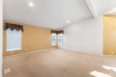 Come enjoy this beautiful Bainbridge model, the largest floorplan in the community. Large bright living room with high vaulted ceilings, formal dining, huge island kitchen with dining there too, a walk in pantry & all appliances. Primary suite is quite large with sitting area, walk in closet & big primary bathroom. The guest bedroom is spacious, there's a den off the living room...could be 3rd bedroom. The home features many solar tubes bringing in natural daylight. Step out onto a beautiful covered patio and an uncovered patio too! Oversized garage for all your stuff! Harvest Gate is a sought after 55+ community with clubhouse, exercise are, billiards, dining room, card room and more! RV parking is also available. Hurry to this lifestyle!