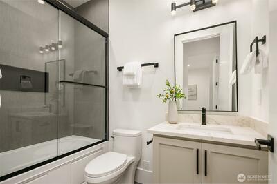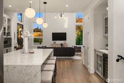 Nestled in coveted West of Market, this newly built home blends luxury & comfort steps to DT & the waterfront. Upon entering, a stunning great room w soaring 16-ft ceilings & wood-wrapped beams, while oak hardwoods flow seamlessly throughout. The chefs kitchen showcases double waterfall quartz island, full slab backsplash, Viking range, & walk-in pantry. Accordion doors off the dining open to covered patio w gas stub & expansive backyard. The versatile lower level provides more space to live or entertain w rec room, kitchenette & bed. Ascend to upper level w ensuite & primary suite w dual closets, spa bath w heated floors, floor-to-ceiling tile shower, & exclusive rooftop deck access w over 500sf of panoramic views of the lake & mountains.