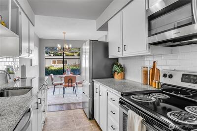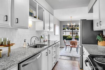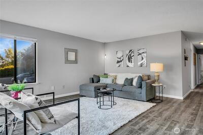 Enjoy partial views of the shimmering Puget Sound and Elliott Bay from this expansive 3-bedroom, 2-bath first-floor condo. This easily accessible home offers over 1,200 sq ft of thoughtfully designed living space, including large bedrooms, and a generous living and dining area. A brand-new washer and dryer add modern convenience, while a dedicated storage unit provides even more functionality. Nestled in a quiet, well-maintained building, this home is perfect for those seeking comfort, space, and a touch of the Northwest’s natural beauty.
