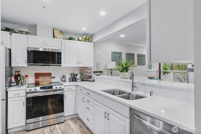 Regency Ridge Community cannot wait to welcome you home! This turnkey ground level unit offers comfort and privacy. Cook and entertain in your beautifully renovated kitchen with quartz countertop and stainless-steel appliances throughout while conversating/entertain guests w/ the open concept floor layout. Primary bedroom and second bedrooms await at the end of the hallway that are generous in size. Enjoy your oversize patio out back while listening to the birds within the greenbelt. This unit comes with a garage (not all units do) located conveniently across the unit. Stop looking and say yes to this quiet and a well-maintained gated community that’s minutes from the freeway and shopping amenities. Brand new furnace installed in 2025.