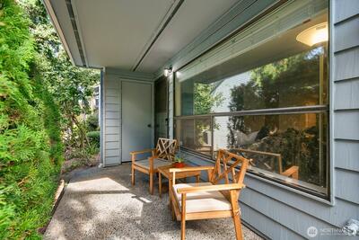 Beautifully refreshed condominium in prime location near I-5, Hwy 99 and ample amenities! New laminate hardwood floors and baseboards throughout. The light and bright kitchen features a cozy eating nook, stainless steel appliances, and farmhouse sink. Spacious open concept living room where you can enjoy movie nights by the wood burning fire! The primary bedroom features a walk-in closet with brand new closet system. In-unit washer/dryer conveniently located in the hallway - all appliances included! This private, ground-floor, end unit boasts 2 outdoor living spaces and 2 parking spots - both covered and uncovered as well as plenty of street parking for additional guests. No current/upcoming assessments. Pre-inspected for your convenience!