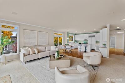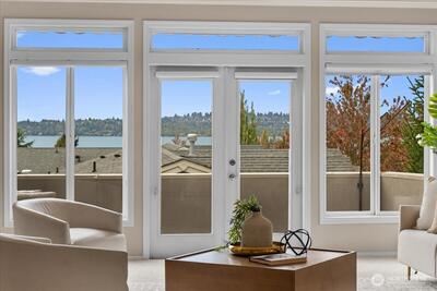 Welcome to this beautiful home with breathtaking views of Lake Washington, the Olympic Mountains and the Seattle skyline in a centrally located Kirkland duplex. This elegant residence offers a light-filled open layout with 3 spacious bedrooms, 2 full baths, and A/C. The kitchen impresses with classic design, ample storage, an island with breakfast bar, new gas range, Sub-Zero refrigerator and Bosch dishwasher. The deck offers the perfect setting to unwind, entertain, and soak in the stunning views. The private, oversized 2-car garage includes a workshop and generous storage room. Less than a mile to Google, Kirkland Urban, Cross Kirkland Corridor and only moments to Kirkland’s premier shops, dining, and waterfront. Seller Pre-Inspected.