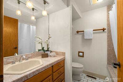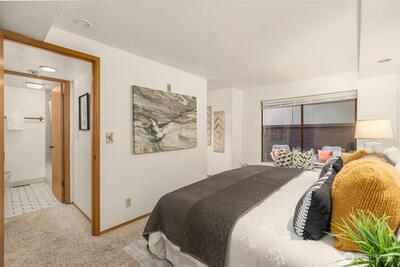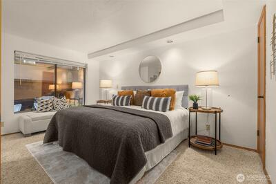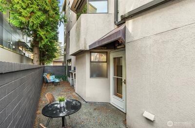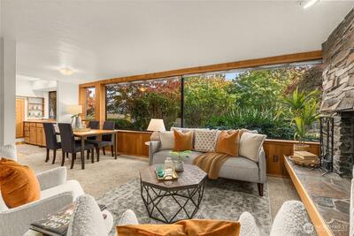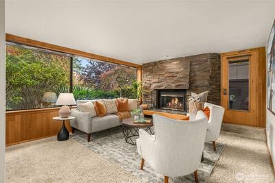 Entry level 2-bedroom, 1.75 bathroom condo in the perfect location! Short distance to the Admiral business district & the renowned Alki Beach! Building has a swanky mid-century modern vibe & offers a sweet outdoor pool. Generous sized unit with great layout & cool MCM wood burning fireplace & private patio. Other features include, air conditioning, in unit laundry, large one car garage & great storage. East facing & oversized windows bring in great natural light. You will love living here!