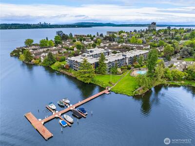 This beautifully maintained, main-level Canterbury Shores condo offers lakefront living in one of Madison Park’s most sought-after communities. The living and dining areas feature a cozy fireplace and connect to a covered patio with serene peekaboo views of Lake Washington. The primary suite provides a private retreat, while the second bedroom works for guests or a home office. Additional features include in-unit laundry, ample storage, ground-floor access, and two parking spaces. Residents enjoy impeccably maintained grounds and resort-style amenities, including a heated pool, workout room, private dock with boat slips, and kayak launch. Just moments to the beach, parks, and cafés, this home offers a vibrant waterfront lifestyle.