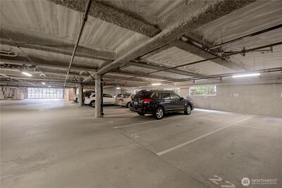 Top-floor, end-unit condo lives large with abundant natural light and west-facing windows that fill the space with warmth. The open kitchen with extensive cabinetry flows into a spacious living and dining area and a private deck for fresh air and relaxation. Featuring 2 bedrooms and 1.75 baths, the primary suite offers three closets and an en-suite; the second bedroom includes a walk-in closet. In-unit washer/dryer, elevator access with no stairs, and two secure parking spaces add everyday ease. Pet-friendly, well-managed building with strong reserves and no rental cap. Near groceries, parks, dining, I-5, and the future Pinehurst Light Rail Station (2026).