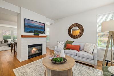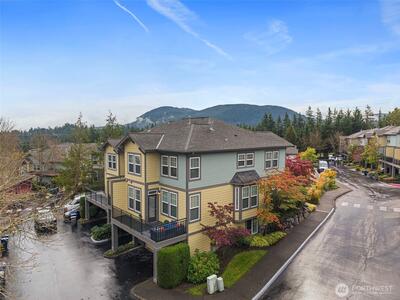 A rare opportunity to own a corner unit townhome in Snoqualmie Ridge! This spacious 3BR/2.5BA home offers a living room, family room, bonus area & 2 dining spaces - perfect for entertaining or working from home. Enjoy an updated kitchen, stainless-steel appliances, & abundant cabinetry. Enjoy hardwood floors throughout the main level, a cozy gas fireplace & a large balcony for relaxing outdoors. Features include a 2- car garage w/ EV charger, new lighting, AC & furnace (3yrs old), california closets & granite countertops throughout. The primary suite boasts a 5-piece bath and walk in closet. Home overlooking a serene courtyard with nearby trails & plenty of guest parking nearby. Close to restaurants, shops and Cascade View elementary.