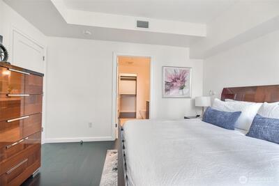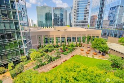 Experience the perfect blend of modern luxury and timeless design in this stunning condo at Bellevue Towers.Boasting sweeping city views and high-end finishes throughout,this home offers an elevated lifestyle in the heart of downtown Bellevue. The open-concept layout features gleaming hardwood floors,a chef-inspired contemporary kitchen with calacatta quartz countertops, and exquisite cristallo backlit counters in the den and bathrooms.The spacious king-size primary suite includes a generous walk-in closet and a luxurious ensuite bathroom with room for two. Enjoy floor to ceiling windows,soaring 9-foot ceilings & a private deck. This smart home is outfitted with automated blinds,lights,Nest thermostat for effortless control and convenience.
