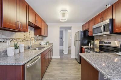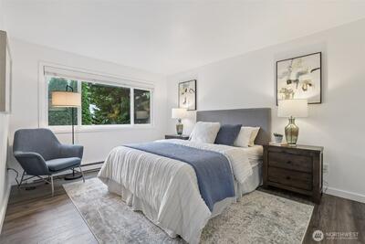 Your gateway to Bellevue living—stylish, connected & surrounded by the Eastside’s thriving tech & lifestyle scene. This refreshed 2-bedroom at Heatherstone shines w/ LVP floors, fresh paint, maple cabinetry, slab granite counters, in-unit W/D, picture windows & a cozy fireplace. Sip coffee on your private patio w/ tranquil views of lush landscaped grounds & the pool just steps away. Sought-after, well-managed community provides plentiful parking & low HOA dues that include water, sewer & garbage. Nestled in a quiet community, yet moments from 520/405/I-90, Microsoft, T-Mobile, Meta, & Bellevue’s best restaurants & shopping w/ Lake Sammamish & parks nearby for outdoor adventures—this home perfectly blends comfort, convenience & lifestyle.