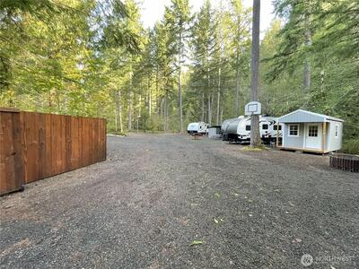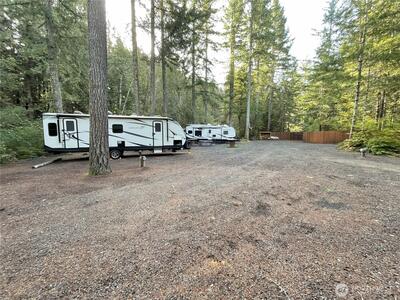 1.83 acres of privacy in the Lake Cushman Community is recreation ready. Site has dual gated entrances/exits, 4 full(power water septic) RV hookups, 2-50 amp & 3-30 amp services, a 10'x12' dry tinyhome w/4' covered porch, wood shed, tuff storage shed, basketball hoop, firepit, fresh gravel and room for all your vehicles, boats, ATVs and toys for every season. Wetland study complete, permits for septic holding tank, sheds and privacy fencing. Mature trees and varied brush offer optimal seclustion with enough open space for manuverabilty and sunlight. The LC Community and neighboring Hood Canal offer golf course, lake and sound access, private and public parks, boat lauches, trails and recreation galore. Not far from HWY101/119 conveniences.