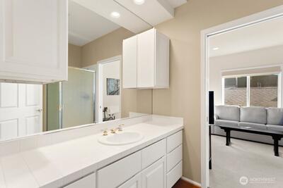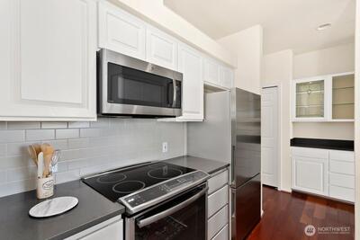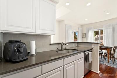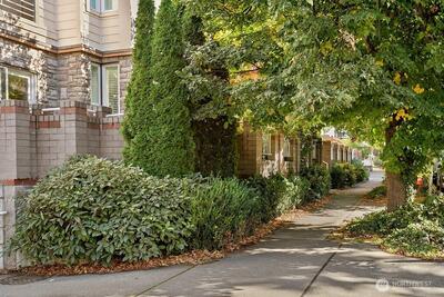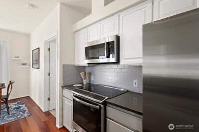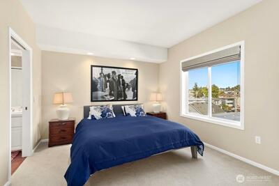 The ultimate combination of convenience, design, and comfort! Sun-drenched top floor condo with vaulted ceilings and a smart, open layout. Situated on the peaceful side of the building. Modern kitchen features sleek silestone counters and stainless appliances. Generous primary suite with walk-in closet and luxurious five-piece bath, plus a second bedroom with private en-suite. Thoughtful built-ins, hardwood floors, and a cozy gas fireplace add character. Dues cover high-speed internet and cable. With an outstanding walk score, enjoy effortless access to all of downtown Ballard’s shops, dining, and nightlife!