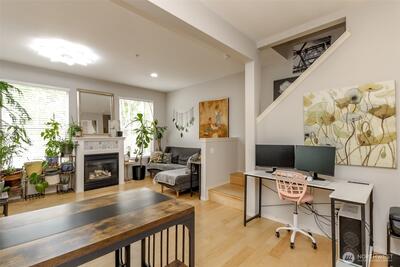 Beautifully updated 2bed, 3bath condo nestled in a private gated community. New flooring and quartz countertops add modern elegance throughout. Cozy up by the gas fireplace as sunlight pours through large windows, filling the open-concept living space with warmth and light. The spacious master suite features a private bath and a custom closet system, perfect for organized living. Step outside onto the durable Trex deck to savor breathtaking views of Mt. Rainier and Surprise Lake. Just steps away, enjoy exclusive private lake access for peaceful mornings or relaxing afternoons. With garage parking and no special assessments, this home offers a perfect blend of comfort, style, and serenity in a sought-after location.