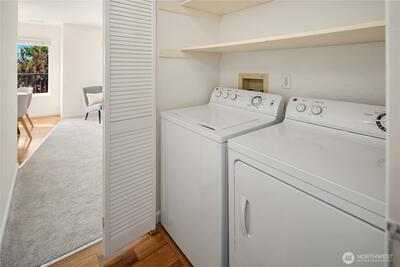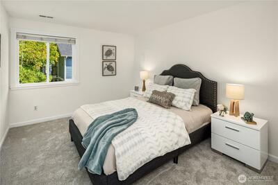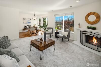 Wonderful Woodridge Condo with Western Views. Enjoy the convenience & comfort in the ideally located Woodridge condo with beautiful Western sunset views. This top-floor 2-bedroom, 1.75-bath home is move-in ready, featuring brand new carpet, fresh paint, updated lighting fixtures & a new electric range. Step inside to a bright, inviting living space with a private deck perfect for relaxing with a storage closet on the deck. The unit includes an OVERSIZED 2-car tandem garage plus an assigned open parking space (15/16) next to the garage area. You'll love the unbeatable location-just one block to I-90 Westbound, providing EZ access to Seattle. Minutes to Factoria shopping, T&T Market, T-Mobile, downtown Bellevue & Sound Transit train & buses.