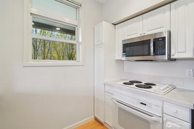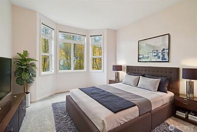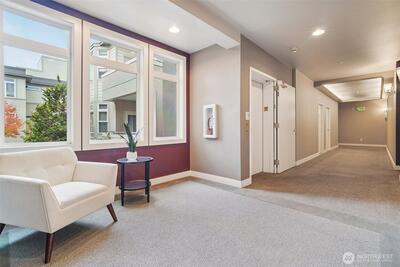 Welcome to Plaza on State in the heart of downtown Kirkland! This freshly painted condo offers a bright, open layout filled with natural light. Enjoy a cozy fireplace and private balcony—perfect for relaxing or entertaining. The kitchen features hardwood floors, a breakfast bar, and generous storage. The spacious primary suite includes a private bath and double closets, plus a second bedroom and full bath. Located in an amazing complex with secured access, great amenities, bike storage, and two parking spaces in a common garage. Conveniently close to the Transit Center, parks, library, pool, Arts Center, and easy access to Google, Microsoft, and I-405!