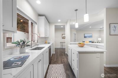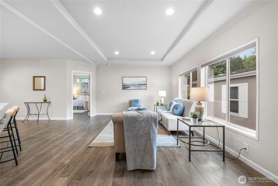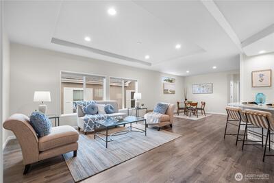 Experience the best of riverfront living at Inglewood East Shores, a 55+ waterfront community on the Sammamish River. Launch a kayak or paddleboard from private access, join friends at the clubhouse, or relax in your nearly new 2024 home. Inside, luxury details stand out—quartz counters, soft-close cabinetry, engineered wood floors, and elegant coffered ceilings. Wall-vented A/C keeps you comfortable year-round, while the spa-inspired bath offers both a soaking tub and roll-in shower for accessibility. With auto-entry, single-level design, and over 1,600 SF of bright, open living, this 3-bed/2-bath retreat blends modern finishes with everyday comfort. Top-rated Northshore Senior Center just 3 miles away!