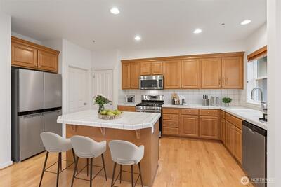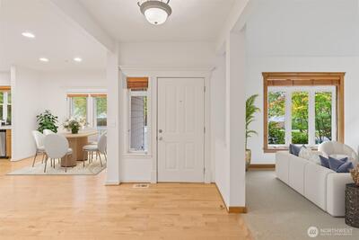 Lovely townhome nestled in the heart of Snoqualmie Ridge. End-unit with LOTS of windows & vaulted ceilings lives like a single-family home. Perfect floorplan, featuring a main floor primary suite, wide open living/entertaining spaces, and a large kitchen with abundant storage & prep space. The 2nd bedroom is tucked upstairs with its own bath, and the spacious loft is a great flex space- could be a media room, office, or easy conversion to a 3rd bedroom. Located on an idyllic street with beautiful mature trees, blocks to shopping, dining, parks & amenities. Sip coffee and watch the world go by on the charming front porch, or retreat to your private yard for a peaceful break. Absolutely turn-key, with brand new paint & carpet. Welcome Home.