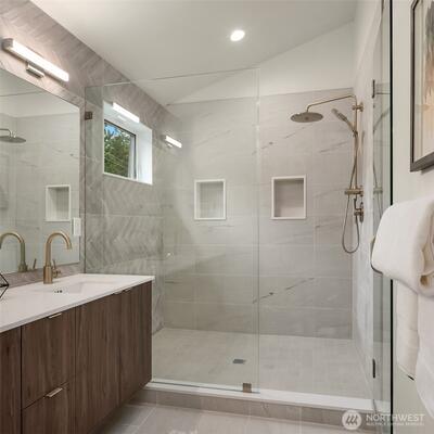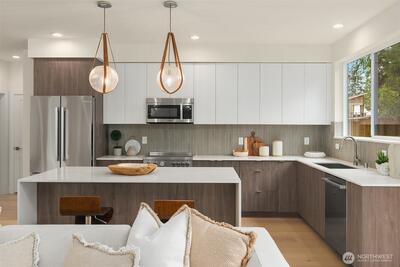 This custom home offers a thoughtfully designed layout with four bedrooms, including a luxurious primary suite and spacious family room/bonus room. High-end finishes include curated tile and lighting. Bright open-concept kitchen that flows seamlessly into the living area. Additional highlights include a garage for off-street parking and a yard perfect for relaxing or entertaining. This location offers exceptional convenience just steps from a new elementary school, the Northgate Light Rail & Northacres Park. Enjoy easy access to local shops and the expanding amenities of the Northgate redevelopment plan, including the Kraken Iceplex. This is your opportunity to enjoy both community and comfort in a growing Seattle neighborhood