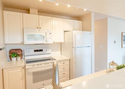 Stop the car! Top-floor comfort meets unbeatable Seattle value in this bright 2-bed, 1.75-bath Greenwood condo. Fresh paint, new carpet, and updated appliances make it move-in ready, while staring out of the west-facing balcony for those perfect PNW sunset views. The open layout and generous size feel airy and inviting. Enjoy the convenience of in-unit laundry, secure parking, all while being close to neighborhood cafés, transit, and parks. A rare blend of modern updates, location, and price. Add your own flavor this vibrant community today!