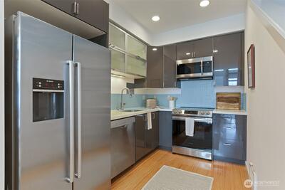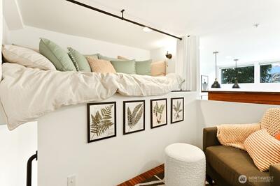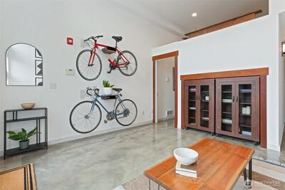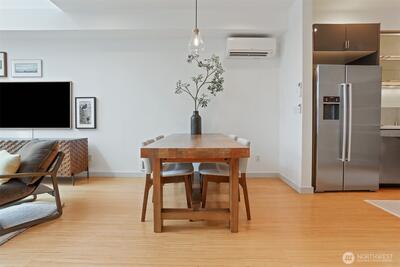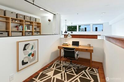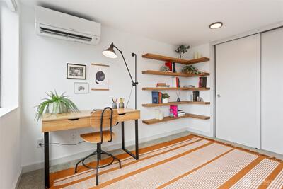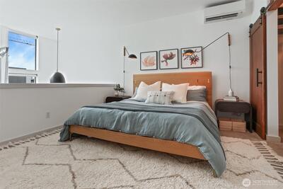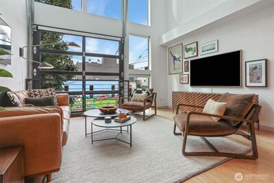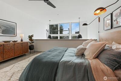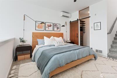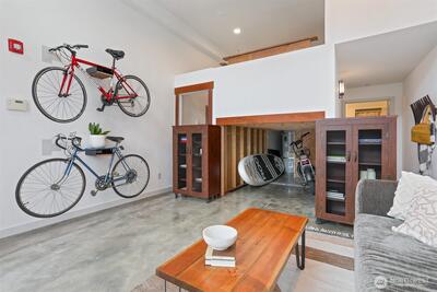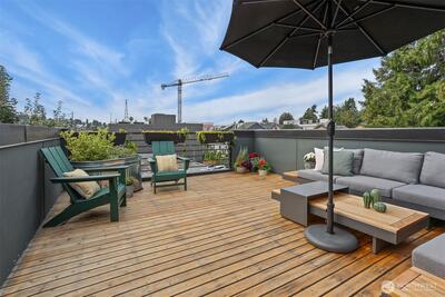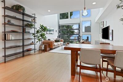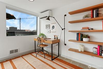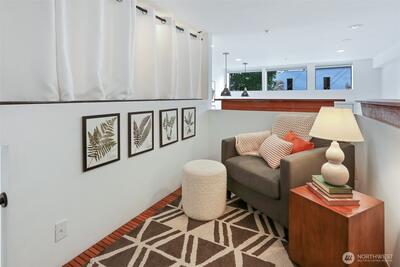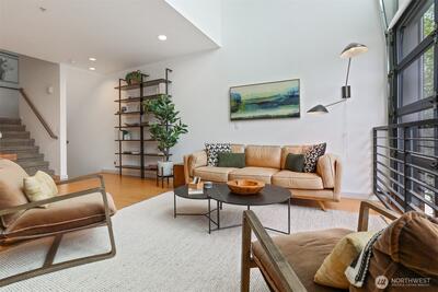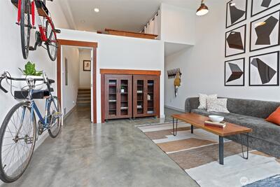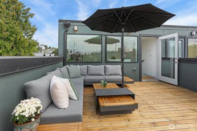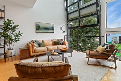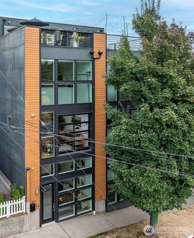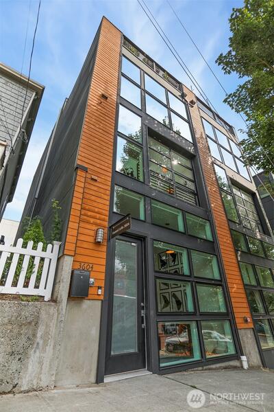 Spacious 2 bed + 2 office townhome in the heart of Fremont at stylish Fremont Lofts 3604. Multiple levels of soaring windows flood the open living and dining areas with natural light year-round. Flexible layout comfortably accommodates 2 dedicated home offices for remote work or creative pursuits. Airy main bedroom retreat with sunset views. Generous storage including gear garage, loft, and walk-in closet keeps bikes, outdoor gear, and belongings neatly organized. Recent upgrades such as AC mini-splits, automatic blinds, and induction stove provide modern, eco-friendly comfort. The rooftop deck offers privacy, greenery, and sweeping hill views. Moments from public transit, 99, and Burke-Gilman Trail along the Fremont Canal. No HOA!