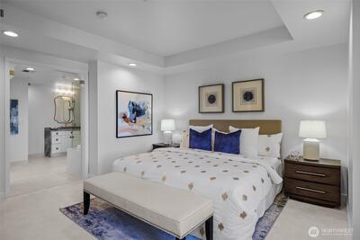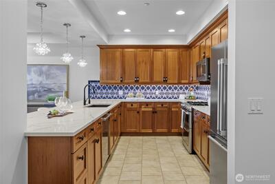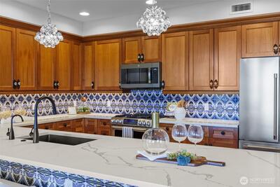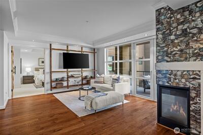 Experience elevated living in this beautifully updated 3BR/1.75BA Astoria condo featuring fresh paint, stylish bathrooms, and thoughtful upgrades— designer tiles, California Closets and Hunter Douglas motorized blinds. The culinary kitchen showcases premium SS appliances, custom detailing, hand-painted tiles, quartz counters and an open layout ideal for entertaining. Floor to ceiling windows fill the space with natural light and frame the courtyard, and peek views of the lake, Seattle skyline & Mtns. Enjoy coffee or sunsets on the spacious deck or cozy up next to the fireplace. Includes 2 secured parking spots, storage unit, concierge, and unbeatable Main Street location—steps to Meydenbauer Bay, parks, boutiques, and dining. Pet-friendly.