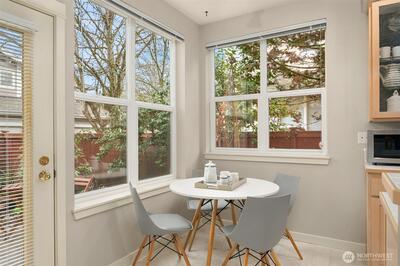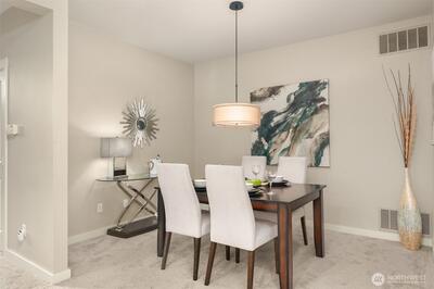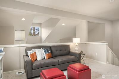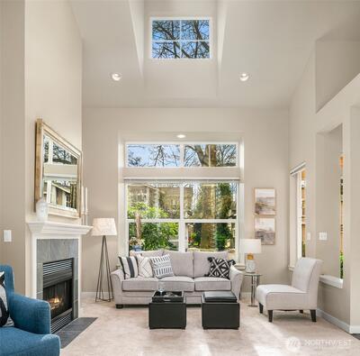 Exceptional end-unit townhome in Redmond’s desirable Rivertrail community, offering 1,725 sq ft of bright, open living. This spacious home features 2 bedrooms, 2.5 baths, and a versatile loft/office, enhanced by vaulted ceilings, skylights, and new flooring throughout. The kitchen opens to a private dining area, while the sun-drenched living room features extra windows and a cozy gas fireplace. The vaulted primary suite includes an ensuite bath with soaking tub, walk-in shower, generous closet space, and skylight. Additional highlights include A/C, newer furnace, laundry room, window coverings, and a rare 2-car garage with ample guest parking. A private, fenced patio backs to a quiet alley, and direct access to the Sammamish River Trail offers unparalleled outdoor enjoyment. Ideally located minutes from shopping, dining, parks, Light Rail, Microsoft, Meta, and top-rated Lake Washington schools.