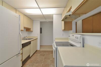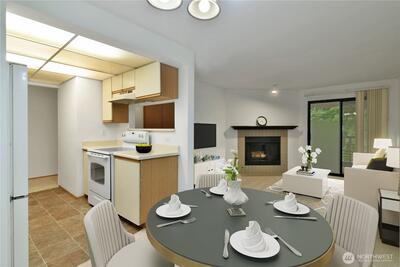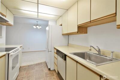 Fantastic location, just minutes to major job centers, transit, light rail, shopping, schools, and several parks. Top floor unit with excellent floor plan including open living room, wood fireplace, kitchen, and dining area. All appliances stay including in-unit washer & dryer. 2 spacious bedrooms and 2 full bathrooms. Balcony with additional storage space, plus extra hallway storage. Fresh interior paint and new flooring. Reserved parking space in secure garage. Secure lobby with elevator in building for convenience. Dues include Water/Sewer/Garbage. No Rental Cap.