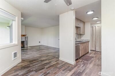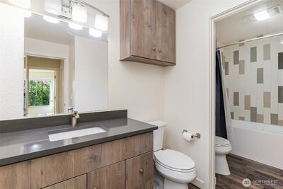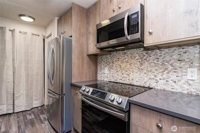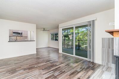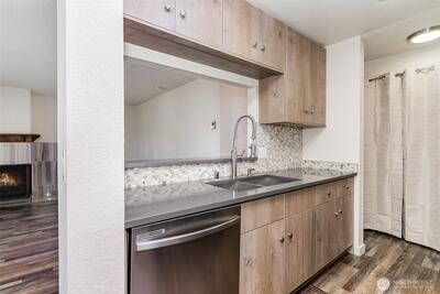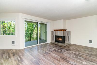 Investors! Immediate income with this fabulously updated condo that is conveniently close to everything! Complete interior remodel in 2021 with vinyl plank floor, quartz counters, new appliances, extra cabinets in kitchen and bath, paint, updated fireplace, carpet in bedrooms, doors & trim. All appliances included. Spacious deck w/locked storage cabinet; community lawn area. Located just steps from the Cross Kirkland Corridor Trail and less than 1 mile to Kirkland's waterfront with shops and restaurants in between. Less than 1 mile to Google/Facebook/ Microsoft. New roof in 2024, low HOA dues! Investors and new home owners- property is subject to tenant rights, lease expires April 2026. Photos were taken before current tenant occupied.