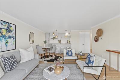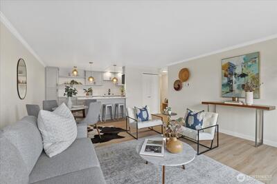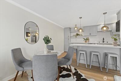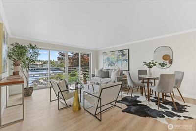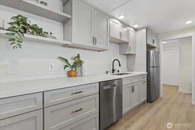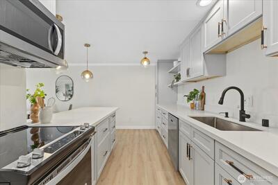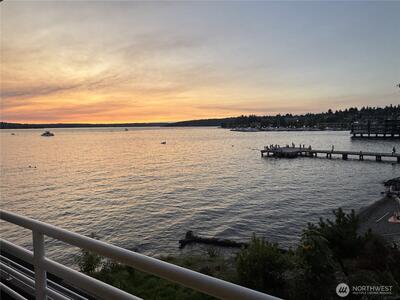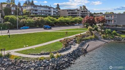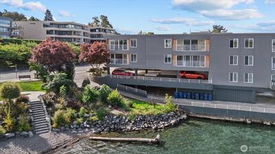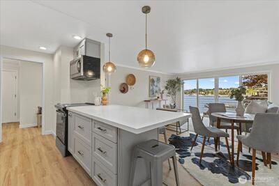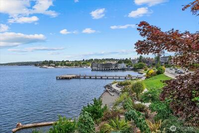 Wake up to Lake WA’s gentle waters outside your window! Soak in the breathtaking & unobstructed lake & park views from this stylishly remodeled 1 bed/1 bath condo. Brand-new kitchen, appliances, quartz counters w/ tons of storage. Large almost 800sf one bdrm end unit (with no one below), offering assigned covered parking & in-unit washer and dryer. Sunbathe or launch a kayak right from the community dock & enjoy day moorage. Waterfront living at its best and steps to Kirkland’s vibrant downtown—shops, dining, galleries—easy access to 405/520, Bellevue, Seattle and Redmond. Well managed HOA w/ no rental cap. Rare north facing unit next to David Brinks park–protected views & gorgeous sunsets! Call agent for private showing! Pre-inspected.