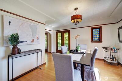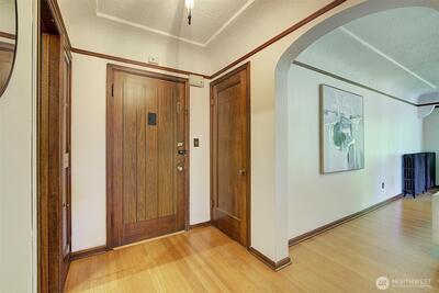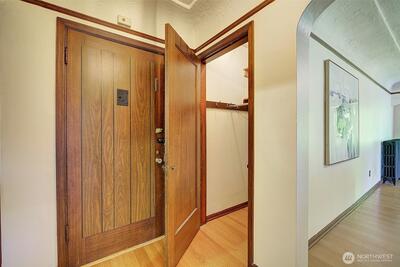 One of Seattle’s remaining Historic Spanish style bldings. This huge 920 sq ft corner top floor 1 bedroom home was built in 1929. Home boasts of many of its originals including stunning leaded glass windows, gorgeous light fixtures, hardwood floors, coved ceilings, beautiful mahogany door & trim, sweet Juliet balcony and corner electric fireplace for ambience. All w/ABSOLUTE CHARM throughout. Formal entry, spacious liv/din rms, 4 oversized closets, eating nook, updated appliances & W/D in unit. HOA covers W/S/G/radiate heat. Walk score 95. Near transit & light rail. Surrounded by everything necessary for all your comfort needs.