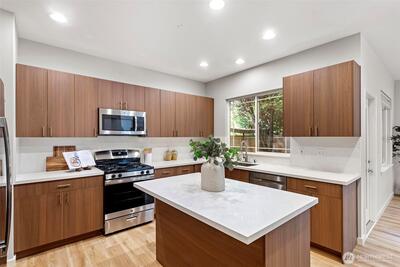 Bright, private, and beautifully updated! This rare two-story townhome in Tamarack Village at Redmond Ridge has been FULLY RENOVATED from top to bottom. Enjoy new interior paint, luxury vinyl flooring throughout, and an all-new kitchen with modern cabinets, quartz countertops, full-height backsplash, stainless steel appliances, and an island perfect for entertaining. Bathrooms include new countertops, and a NEW roof (2024) ensures lasting comfort. The spacious primary suite boasts a 5-piece bath and large walk-in closet. Enjoy covered porch, and a private fenced backyard. Conveniently close to parks, trails, shops, top-rated Lake Washington schools, and the Microsoft Connector shuttle stop. No rental or pet restrictions—move-in ready!