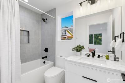 Newly constructed, modern, stand-alone house, just shy of 1000 sq ft, with 2 bedrooms, 2.5 baths, and a private back yard that backs up to the West Seattle Golf Course. A deck could easily be added to extend your living space outdoors. Everything is brand new, including designer finishes plus a dedicated off-street parking space. These homes rarely have this much privacy and yard space. Come see for yourself! The park and community center across the street along with proximity to downtown, make this one a commuter's dream on one of the best streets in the neighborhood. Don't miss your chance to call it home!