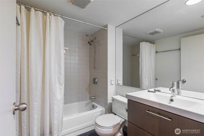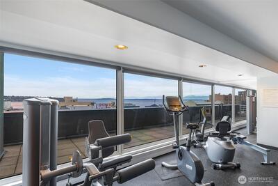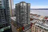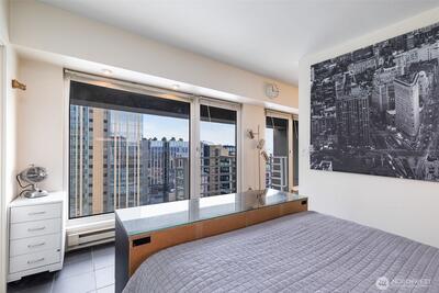 High on the 21st floor of Newmark Tower, a block from Pike Place Market and the Seattle waterfront, this 1-bedroom, 1-bath condo features south-facing floor-to-ceiling windows with city and partial Puget Sound views. Efficient layout with black slate floors and Juliet balcony. Amenities include 24-hour concierge, indoor pool, hot tub, sauna, gym, showers, outdoor decks, party room, guest suite, business center, storage, and garage parking. With Target on the ground floor, daily essentials are at your doorstep. Two blocks to light rail! Investor- and part-time owner-friendly building with short-term stays allowed and no rental cap. In time for the 2026 World Cup, this home captures easy living and downtown energy in one exceptional address.