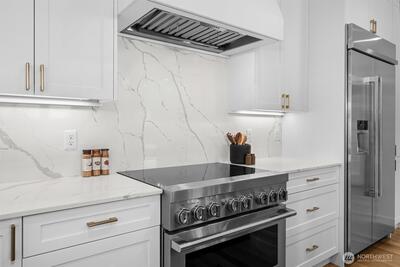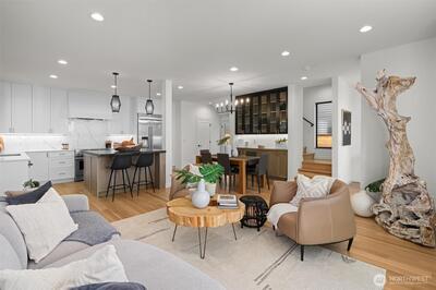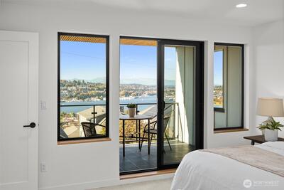 On a quiet residential street! Live beautifully in this Capitol Hill residence by Pivotal Homes, featured in Architectural Digest. Every detail tells a story—from white oak floors & architectural lighting to walls of glass. The chef’s kitchen shines at the heart of the home features premium appliances, a waterfall island, & a formal dining room w/built-in cabinetry—perfect for entertaining. Glass doors open to a private patio for long summer dinners. Upstairs, the primary suite offers a spa-worthy bath & a covered terrace w/built-in heaters & sweeping views of Lake Union, Gas Works Park & the city skyline. A view-filled office, two additional bedrooms, and private parking complete this modern urban retreat. Ask about our 10K lender promo!