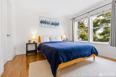 RARE short-term rental opportunity moments away from Climate Pledge Arena - NO RESTRICTIONS - just in time World Cup 2026! This bright corner unit, located in the heartbeat of Lower QA/Uptown, surrounded by numerous amenities. Two blocks from Seattle Center, cafes, restaurants, and bars. Serves as a perfect pied-à-terre for entertaining or primary residence for short commute to SLU. Featuring all-new paint and light fixtures, bright corner guest bedroom is perfect for a home office or guests. Enjoy a private balcony with city views and a rooftop deck, perfect for Fourth of July and New Year’s fireworks. Well run HOA w/low dues. Don’t miss this amazing opportunity in the most coveted neighborhood of Seattle!