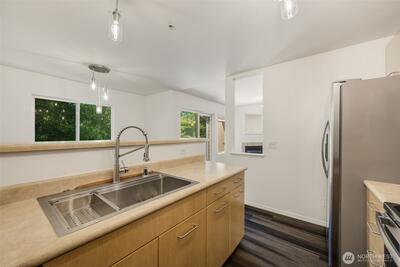 Discover this unique top-floor unit in the luxurious Bordeaux Condominiums of Sammamish. This 2-bed, 2-bath home offers 981 sq ft of open living space. This bright and airy home boasts vaulted ceilings and abundant natural light from its plentiful windows. Enjoy a cozy living area with a gas fireplace, a quaint kitchen, and an exceptional primary suite with an en-suite bath and walk-in closet. Interior recently painted. Tankless water heater for endless hot water.The unit comes with a private garage right at your doorstep. In-unit laundry adds convenience. Community perks include two pools, a hot tub, gym, clubhouse, and open space. Close to trails, shopping, dining, SR-520, Costco HQ, MSFT and top schools. No rental cap. Welcome home!